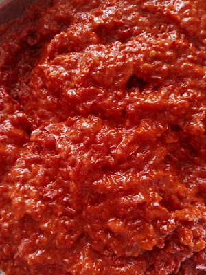 Тази паста от пиперки правеше моята баба и я стерилизираше в малки бурканчета.Използваше печени пиперки - червени и зелени.Но аз използвах сушени пиперки, имах в наличност и исках да ги оползотворя.